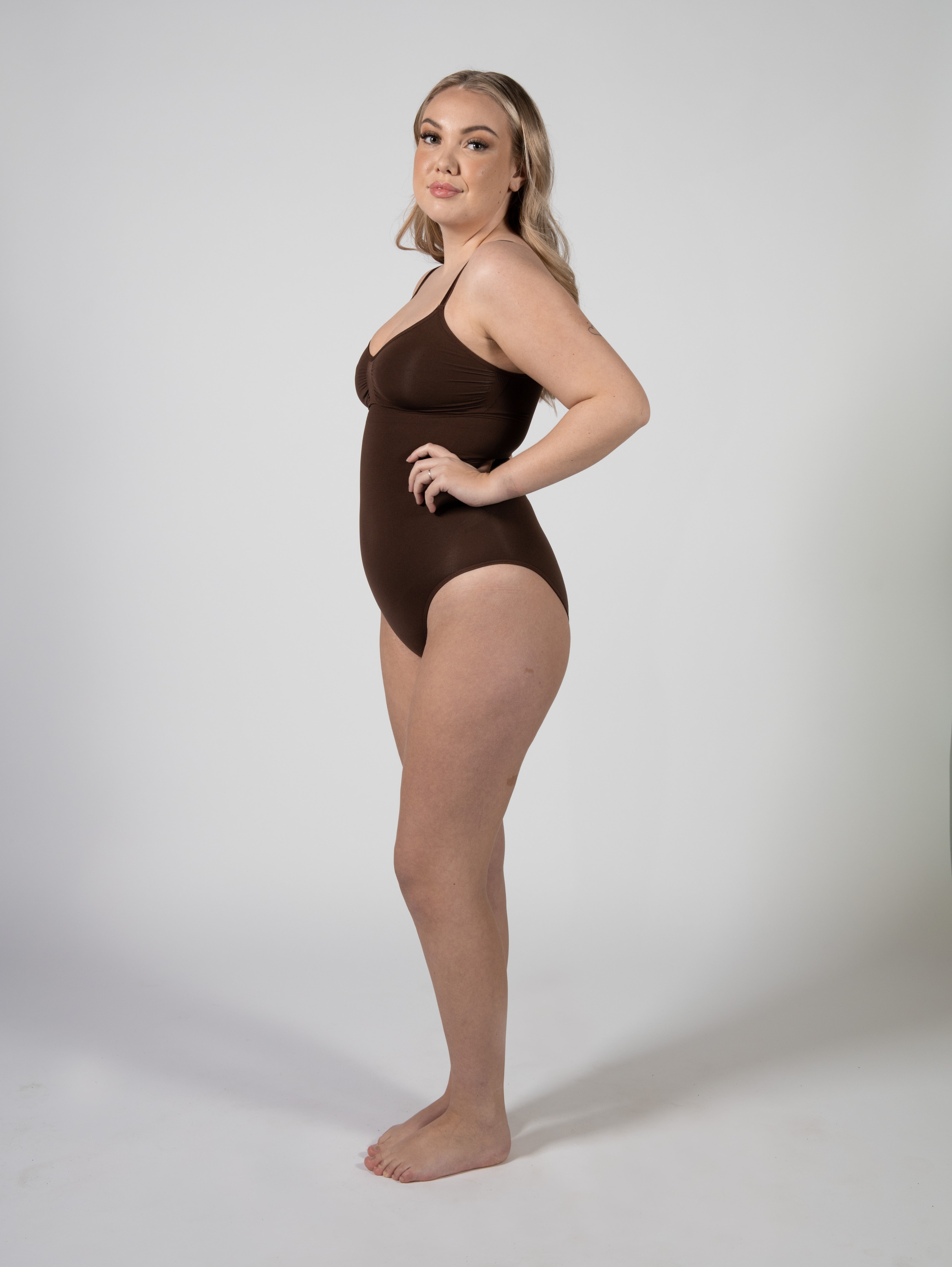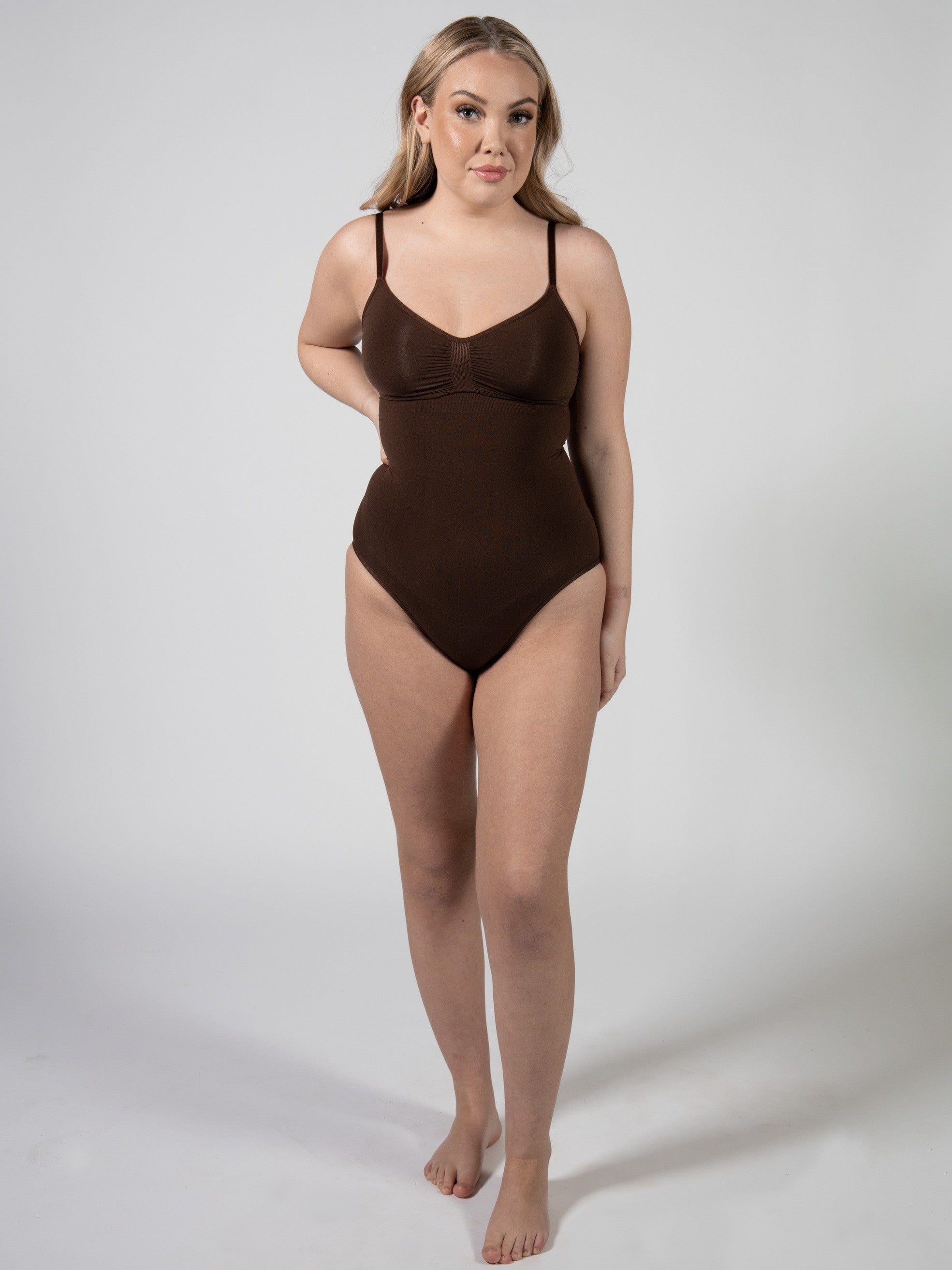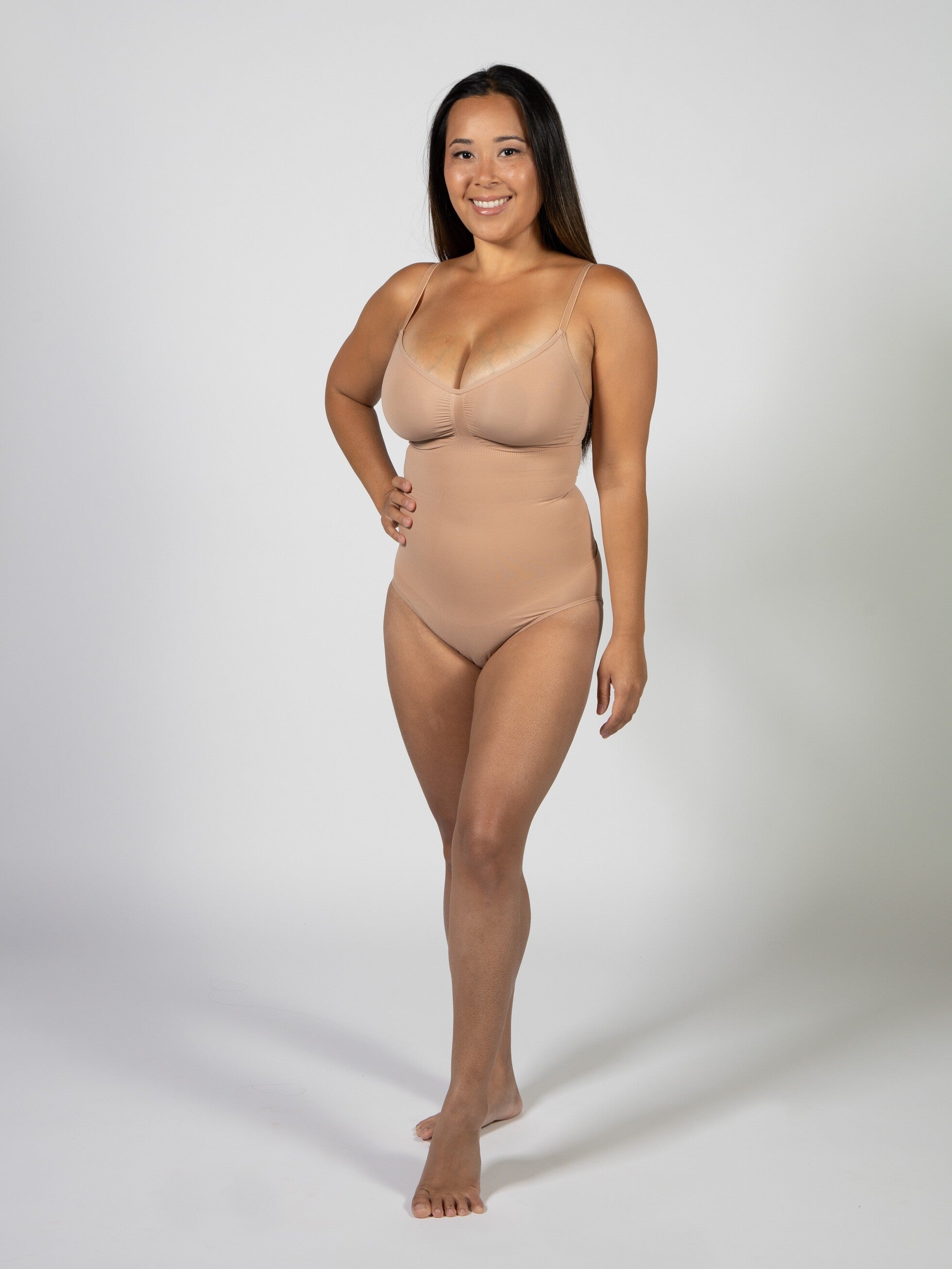 Shaper Brief aðhaldssamfellan okkar er með miklu aðhaldi. Aðhaldsfatnaðurinn lyftir brjóstum og rass og er með extra mikið aðhald á maga og mjaðmasvæði. Samfellan er úr einstaklega teygjanlegu efni sem teygist tvöfalt sinnar stærðar. Ef þú ert á milli stærða mælum við með að taka stærri stærðina til að tryggja þægindi þar sem aðhaldið er mikið.